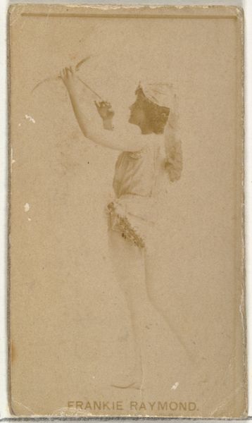 Curator: This is an advertising card dating to the 1880s. It’s from the Actors and Actresses series (N145-7) issued by Duke Sons & Co. to promote Duke Cigarettes. The subject is Ruth Stetson. Editor: It’s a bit ghostly, isn’t it? Washed out, almost sepia-toned. I notice the texture feels…starchy? Like a treated fabric, or perhaps the residue of cheap paper production. Curator: Well, it’s a collotype, a type of photomechanical print. Photography, drawing, and printmaking all meet here. That it's bound to advertisement shapes the artwork in a lot of ways, wouldn't you agree? Editor: Absolutely! Think about the means of production. Cheap materials, mass distribution…the whole point was getting these cards into as many hands as possible along with packs of cigarettes. Ruth Stetson becomes a commodity, a token of aspiration. Curator: It certainly illustrates how the burgeoning celebrity culture of the late 19th century was intimately connected to consumerism. Stetson's image is being used to sell a product. That's a fairly new cultural phenomenon at the time. Editor: Exactly, the social context here is paramount. You’re consuming both the cigarette and a fantasy of fame and sophistication attached to this performer. Consider also the female labor involved, mostly unacknowledged, in packaging and distribution! Curator: Yes, we see that interplay between gender, performance, and commercial imagery that really defines much of this era’s visual culture. Stetson’s portrait, framed by her profession and these collotype methods, makes you see her role in culture a little different than you would in oil. Editor: I am now thinking about that gap: oil paintings made during this period are now in institutions like this museum—yet this humble cigarette card has been produced through photographic means. So who decides which objects are classified as “art” and which ones as just a piece of mass production and advertising? Curator: Precisely! It questions that high-art boundary we place on our collection. This also invites discussion on issues of access, dissemination, and, indeed, the politics of collecting. Editor: So, while the card seems ephemeral, a throwaway object, it really opens a portal to the complex material culture of its time. Curator: Indeed. Hopefully it allows for deeper thinking on these beautiful and rich collections.