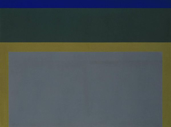 Brice Marden made "Air & Water" with oil and wax on paper. What strikes me about this work is the way Marden has manipulated his materials to create these luminous, subtly shifting fields of color. The paint isn’t troweled on thick, but you can see the hand of the artist at work in the slight variations in texture and tone. The top part of the canvas has this warm yellow hue, and it feels like light breaking through clouds. Then your eyes travels to the second part of the canvas where there’s this grounding dark blue. It's easy to get lost in the nuances of color and surface. Marden's work reminds me a little of Agnes Martin, who explored the grid and subtle color in her paintings, though Marden brings a sensuousness and physicality to his surfaces that is all his own. Ultimately, "Air & Water" is a reminder that painting is about more than just representation; it’s about the experience of seeing and feeling the world around us.