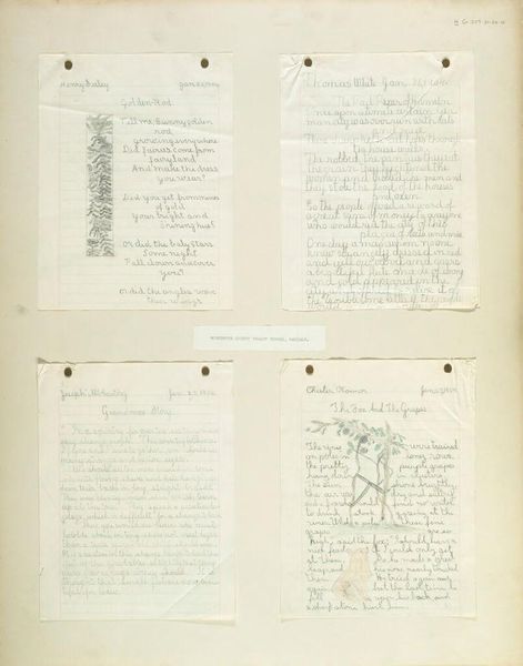 Curator: This composite image, titled "Crime, Children, Truant Schools," presents arithmetic exercises from the Worcester County Truant School. What strikes you about it? Editor: Well, the handwriting is neat, but it's just math problems on paper. It feels very… bureaucratic. What do you see in it? Curator: I see a powerful commentary on social control and the pathologizing of poverty. These aren't just sums; they represent children deemed "criminal" for truancy, often due to economic hardship. How does it change your perspective knowing these were tools of a system designed to assimilate and discipline marginalized youth? Editor: That reframes everything. It's not just arithmetic; it's a document of injustice. I hadn't considered the social implications behind what seemed like a simple school assignment. Curator: Precisely. Art can reveal these hidden power dynamics, prompting us to question whose stories are told and whose are silenced. Editor: I’ll never look at old schoolwork the same way again.