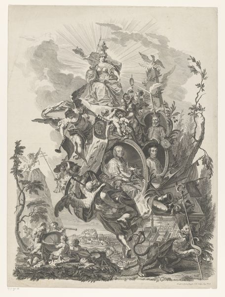 This drawing was made by Willem Hendrik Hoogkamer, in the Netherlands, to commemorate the third centenary of the Reformation. Its iconography gives us some clues as to its cultural and social context. The imagery of angels, light, and the all-seeing eye gives the print a religious and spiritual quality, while the portrait of Martin Luther and the inscription referring to the Reformation point to the historical significance of the event being celebrated. The lion with books and broken instruments in the bottom left may represent ignorance being defeated by knowledge and music. Made in 1817, the image is a commentary on the Protestant Reformation. It reflects the values and beliefs of Dutch Protestant culture in the early 19th century. Art historians can contextualize the image further by researching the Dutch Reformed Church and analyzing contemporary publications to fully understand the artwork's meaning.