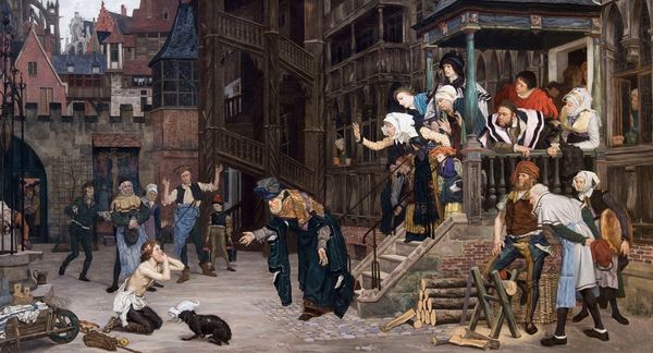 This scene of a town square with an arriving stagecoach was painted by Carl Spitzweg sometime in the mid-19th century. Spitzweg’s charming genre scenes, such as this one, reflect a conservative and nostalgic view of Germany, one that deliberately ignored the sweeping social changes that came with industrialization. Here, the arrival of the stagecoach offers a moment of excitement and spectacle in an otherwise quiet, provincial town. The artist presents a romanticized vision of small-town life, with quaint buildings, a town fountain, and townspeople gathered to watch the stagecoach arrive. The image presents a complex social hierarchy. We see the wealthy passengers arriving in comfort, while others, presumably local townspeople, are washing clothes in the fountain, or peering down from their windows. Spitzweg’s genre paintings are often subtly satirical, poking fun at the quirks and eccentricities of ordinary people. To understand this painting better, consider the historical context in which it was made. Look at travel writing and newspapers of the time to understand how stagecoaches figured in people's daily lives. Understanding the social and cultural context helps us to understand how art both reflects and shapes the world around it.