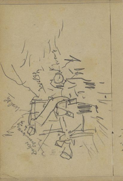 This is George Hendrik Breitner’s sketch of ‘Infanteristen aan een bosrand’ kept at the Rijksmuseum, the date of its creation is unknown. The sketch, made with graphite on paper, captures a fleeting moment with remarkable economy. Breitner uses a minimal, skeletal structure to convey the essence of soldiers positioned near a wood's edge. The quick, gestural lines barely define the figures and the landscape but suggest a scene brimming with potential energy and tension. Notice how the composition is divided into distinct zones through the use of line. The upper section shows the alignment of the infantry, while the lower section seems to depict the natural elements of the wood. The sketch's incompleteness invites the viewer to participate, to fill in the details and complete the narrative. It reflects an engagement with the philosophical idea that art doesn't offer fixed meanings but is a catalyst for individual interpretation. The sketch acts as a sign, prompting us to consider the broader implications of military presence within a natural setting.