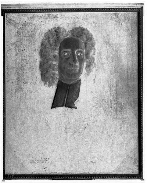 Editor: This is an X-radiograph of "Portrait of a Man (Horace)" by Michiel van Musscher. It's fascinating to see the painting like this, almost like a ghostly image. What strikes you about it? Curator: The composition reveals a fascinating interplay of form and void. Observe how the density of the paint, particularly in the face and armor, dictates the visual weight and textural complexity within the radiographic field. Editor: So the varying shades tell us about the material density? Curator: Precisely. The artist's hand, revealed through the material's response to the X-rays, emphasizes technique and the very structure of the work. Consider how the artist’s technique makes use of the materiality of paint to create the portrait. Editor: I never thought about an X-ray this way. It’s like seeing the bones of the artwork. Curator: Indeed, a skeletal view, revealing the artistic structure, allowing us to appreciate the form in a new dimension.