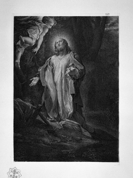 Robert Sayer created this mezzotint titled "The Conversion of Galen". The scene captures a pivotal moment of introspection and transformation, set against a backdrop of nature's stark beauty. Sayer, working in the late 18th century, taps into the period's fascination with science and spirituality. Galen, a physician, stands contemplating a skeleton, a powerful symbol of mortality. This image invites us to consider the artist’s and the viewer's relationship to life, death, and knowledge during a time of immense social and intellectual change. The play of light and shadow enhances the emotional weight of the scene, drawing us into Galen's moment of realization. Is it enlightenment or despair? This work serves as a reminder of the importance of self-reflection. It acknowledges that even the most learned individuals can be confronted by the most basic truths of human existence. It challenges us to consider what we value, what we believe, and how we choose to live.