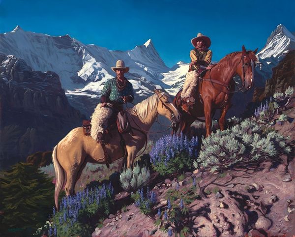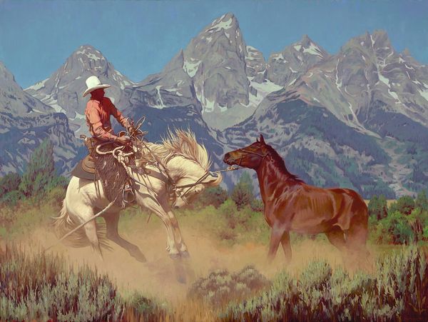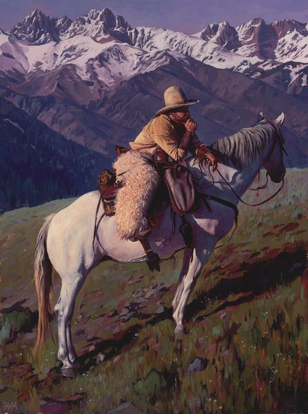 Mark Maggiori made Wyoming Spring, probably fairly recently, and you can see how the smooth application of oil paint gives the whole scene a kind of glow. Look how the light seems to come from everywhere and nowhere, softening the edges of those distant mountains and making the horse and rider stand out against the muted background. Maggiori is playing with this romantic, slightly unreal, kind of Western imagery. The scene feels hyper-real, in a way. Notice the way the brushwork almost disappears. The colors are blended to create smooth gradations of tone, especially on the horse. It is a classic cowboy image, but if you look back to painters like Frederic Remington or Charles Marion Russell, who were also obsessed with the West, you can see how this painting feels both familiar and completely new. Art’s a conversation, right?