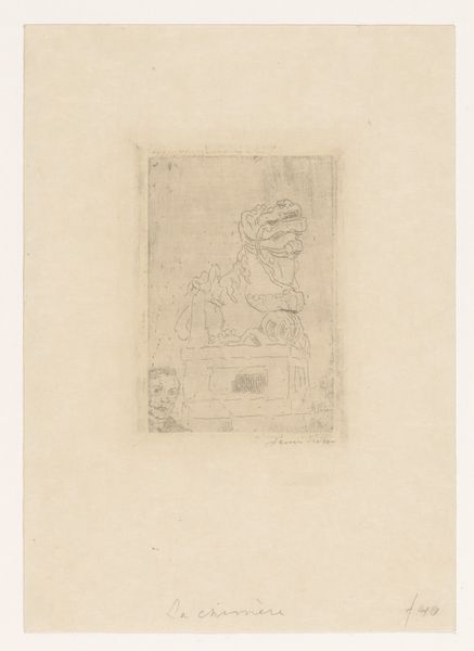 Editor: This is a portrait of François Rabelais by Henri-Charles Guérard, made between 1856 and 1897. It's a print, an engraving on paper. I’m immediately struck by how small it is, almost like a postage stamp of the past. What can you tell me about it? Curator: This piece raises interesting questions about the relationship between art and its public. Rabelais was a major figure, a humanist writer, so this image speaks to a desire to represent and circulate his likeness. But who was the audience for this print? Editor: Perhaps scholars or collectors interested in Rabelais's work? The scale makes it seem quite intimate. Curator: Exactly. And consider the timing. It was made centuries after Rabelais lived. What motivated Guérard to revisit this Renaissance figure? The rise of Romanticism and its fascination with the past? The engraving revives Rabelais, shaping our contemporary view of a historical persona through a carefully crafted, reproducible image. What’s the effect of reproducing a historical portrait like that, over and over again? Editor: I guess it democratizes the image, making it more accessible than, say, an original painted portrait reserved for the elite. It almost turns him into a celebrity. Curator: Precisely. Printmaking played a key role in the dissemination of knowledge and ideas. Think about how this image functions within the Rijksmuseum. Does it function as art, as historical document, or both? Editor: That’s a really good question. I never thought about the political dimension of simply reproducing an image. Curator: And remember, these reproductions have power. They can shape perceptions and solidify historical narratives. Analyzing how and why certain figures are chosen for this treatment tells us a lot about the values of the culture doing the reproducing. Editor: That's given me a lot to consider. I definitely have a better sense of how context shapes the meaning of a work like this. Curator: Indeed. It's not just about the individual, but about the societal forces that bring that individual into our view, and on what terms.