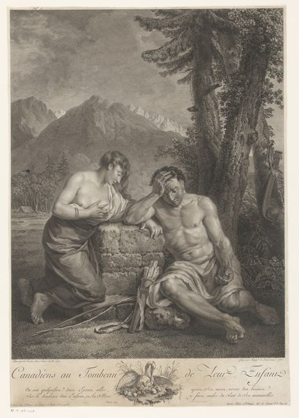 Jean Louis Potrelle created this print called 'Nimf van Diana haalt een pijl uit de hals van een hert', or 'Nymph of Diana Removes an Arrow from a Deer's Neck', sometime between the late 18th and early 19th centuries. It was a period deeply entrenched in Neoclassicism, which favored a return to classical antiquity. The depiction of Diana, the Roman goddess of the hunt, presents an interesting intersection of power, vulnerability, and care. Traditionally, Diana embodies female strength and independence, yet here, we see her in an act of compassion, tending to a wounded deer. Consider what this suggests about the complexities of femininity and the multiple roles women occupy in society. Is Potrelle suggesting that care and strength are not mutually exclusive? Also, the deer itself, often a symbol of wildness, here becomes an object of empathy. It’s a poignant moment, isn’t it? One that perhaps invites us to reflect on our relationship with the natural world, and our own capacities for both harm and healing.