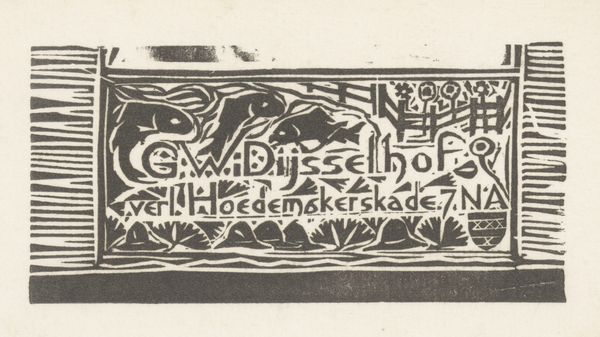 Gerrit Willem Dijsselhof created this letter with calligraphy using pen and brush, resulting in an intimate and intriguing visual experience. The composition is immediately striking, not for its adherence to traditional forms, but for its playful disruption of them. Dijsselhof uses a limited palette of blues, reds, yellows, and greens, which function less to depict reality and more to construct a semiotic system. Abstract shapes and bold lines exist alongside recognizable letters forming words. The use of color and form doesn't simply decorate the text; they offer a counterpoint to the linear structure of the writing, challenging our perception of language itself. In breaking down conventional forms, Dijsselhof is inviting us to see beyond the surface, to decode the underlying structures that govern our understanding of art and communication. The small scale of the work, combined with its intricate detail, compels us to consider how materiality and form work together to communicate meaning.