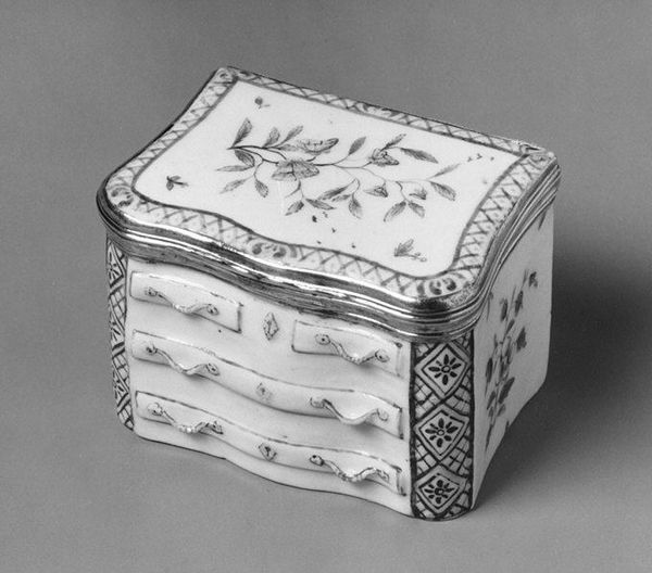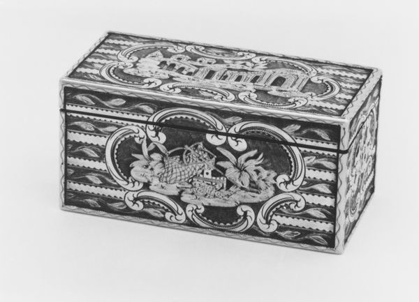 Curator: Before us, we have a decorative Snuffbox, likely crafted between 1762 and 1763, residing here at the Metropolitan Museum of Art. Editor: My initial response is that this piece feels quite delicate, perhaps even a bit austere given the silver. It exudes formality; like powdered wigs and hushed drawing rooms. Curator: Precisely. Note how the artist, presumably Paul Robert, employed intricate chasing and repoussé techniques to achieve that very aura of refinement. The low relief sculptural panels exemplify the rococo style with those whimsical, flowing lines. Editor: But is it just ornamentation? Look closely at the narratives represented: figures engaged in leisurely domesticity, cherubic forms evoking innocence. Whose leisure, though? Whose innocence? Curator: Indeed, one cannot ignore the socio-political context. The luxury of snuff-taking, and by extension the snuffbox itself, was almost exclusively enjoyed by the aristocracy. Consider how such a commonplace object reinforces class distinctions through its material value and implied leisure. Editor: It begs the question: does the charm of the imagery ultimately obscure the more structural inequalities that such items propped up? How are we to appreciate this craftsmanship without a consideration of the historical weight it carries? Curator: While those larger questions undoubtedly inform our perception, let’s not diminish the craftsmanship on display. The formal organization here creates rhythm; it’s a little jewel-box, designed to delight. There’s a satisfying precision, even a purity in the lines despite its overtly ornamental function. Editor: I think both elements must hold space. To understand this object solely as a marker of wealth feels insufficient, just as ignoring the sociopolitical implications does. This object should push us to confront the art of its making, with consideration given to those both served, and failed by the social dynamics reflected within it. Curator: I’m quite content knowing that after our exchange, more can be learned from looking deeper at pieces like this, as both a composition and an object of culture. Editor: A shared awareness enables each patron a chance at true comprehension. Hopefully, through our discussion, people recognize themselves not just as viewers, but active participants in the continued life and conversation surrounding objects such as this.