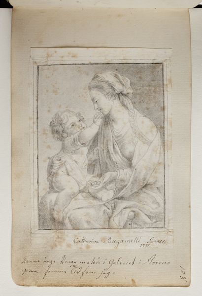 Curator: Looking at this piece, the immediate sensation is one of stillness. It's muted, almost dreamlike in its sepia tones. The framing suggests it's one image extracted from something larger. There is an interesting sense of removed calm. Editor: Indeed. This is a photo reproduction of Raphael’s "The Bridgewater Madonna", created sometime between 1850 and 1900. Made during the explosion of the Realist style and new photography practices. And this one bears the unmistakable stamp of Gustav Schauer, though what feels almost devotional about that initial calm to me is precisely part of how its own history and meanings now might also strike the contemporary eye as oppressive in its time. Curator: Oppressive? That’s a strong word! I see tenderness. I mean, look at the soft, almost blurring light. Editor: I hear you. But think about it: the idealization of motherhood, the Madonna as the epitome of feminine virtue—these images, while aesthetically pleasing to some, served and continue to serve as powerful tools in shaping gender roles and expectations of all womankind and especially women from marginalized and colonized communities! That halo seems now a cage! Curator: A cage... well, that’s certainly one way to put it. I suppose when placed in the context of how these images have historically been used... Editor: Exactly. In a time when we are fighting for reproductive justice, for trans rights, for recognition of diverse family structures, this photograph reproduced from what in its time tried also to appear and make something immutable raises questions. To be fair, though, Schauer and others thought they could help spread awareness of old masters. Curator: So, the original intention of bringing art to the masses is, perhaps, complicated by its afterlives. A reproductive justice framing is vital here. Even if one does appreciate, I suppose, the composition itself! Editor: Precisely. This photograph pushes us to be really reflexive when we look at any visual or aesthetic choices, which inevitably speak to historical conditions that are anything but simple or apolitical! Curator: So, beyond the initial impression, digging deeper reveals complex, even contradictory layers... making you really sit and think. I appreciate that. Editor: Likewise, engaging these "stillnesses" or historical inheritances, even if uncomfortable, allows for much richer discussions of both then and now.