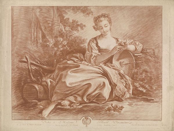 This is "De Welsprekendheid," or "Eloquence," a drawing by Louis Fabritius Dubourg, made with pen in gray ink and gray wash. Notice how Dubourg uses a predominantly monochromatic palette, creating subtle tonal variations that model the figure and landscape. The composition directs our gaze from the soft, shaded background to the central figure, who is depicted in three-quarter view, her gaze averted. The artist’s delicate rendering of the drapery that swathes her body and the subtle gradations of tone lend her a classical, statuesque quality. She holds the caduceus of Hermes, symbolising eloquence and commerce, attributes that align with the figure’s allegorical representation. The books act as both a support and symbolic props that allude to the classical education necessary for effective rhetoric. Note how Dubourg invites contemplation on the art of persuasion and the visual language through which it is constructed. The drawing, with its muted tones, subtly challenges the viewer to engage with the nuances of representation and meaning.