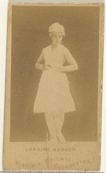 Vio Norton, from the Actors and Actresses series, is a promotional trading card for Virginia Brights Cigarettes made by Allen & Ginter. This image exists within the context of late 19th-century celebrity culture, a time when performers were both admired and commodified. Norton, dressed in a tutu and laced boots, assumes a posture of studied humility, a contrast to the burgeoning visibility and power of actresses at the time. These cards reflect not only a fascination with theatrical personalities but also the dynamics of gender and class. Actresses like Norton were among the first women to achieve a kind of public recognition, and yet they did so within a society that still largely restricted women's roles. The choice to include actresses in cigarette packaging speaks to the desires and fantasies of consumers, linking the allure of the stage with the pleasure of smoking. The card serves as a reminder of the complex interplay between art, commerce, and identity in shaping cultural values.