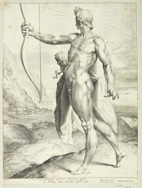 Editor: Here we have Albrecht Dürer’s "Apollo" from 1504, a print utilizing engraving techniques. It has such an ethereal, almost unsettling mood for a depiction of a god, doesn’t it? What draws your attention when you view it? Curator: It's fascinating to consider Dürer's workshop practices and how the reproduction of this image would have affected its reception. Engraving, as a printmaking technique, democratized art to some degree. Consider the paper itself: where did it come from, who made it, and how did that labor impact the final product’s value and meaning? What implications does the reproducible nature of the print medium have on our understanding of originality and artistic creation in the Renaissance? Editor: That's a very different lens than I was expecting! It's true, I tend to get caught up in the imagery. Curator: And what a loaded image! A classical figure made available for wider consumption. Let's think about the copperplate: the artist’s labor to produce the matrix. Do you think Dürer considered the accessibility of the final image, given the effort involved? Editor: So, rather than just the artistic skill, we should be thinking about the entire production line, almost? Curator: Exactly. The availability of paper, the skill of the printer, even the distribution networks all contribute to how the art was received and understood. It’s not just about the genius of Dürer; it’s about the whole system. Editor: It definitely makes me appreciate the print more as a manufactured object, embedded within a specific economic and social environment. Curator: It's easy to focus on iconography and artistic talent, but really engaging with art history requires an investigation into those material conditions that enabled the art to exist and circulate. Editor: That’s a really insightful way to look at art; I’ll certainly keep that in mind going forward!