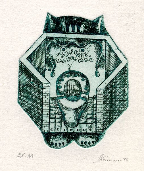 Oleksandr Aksinin made this print, In Memoriam Bleuler, using etching, a traditional printmaking technique. The design is incised into a metal plate, likely copper, which is then inked and pressed onto paper. Look closely and you'll see the dense cross-hatching, a hallmark of the etching process, creating areas of deep shadow and subtle tonal variations. Notice how the linear quality of the etching emphasizes the ghostly figures and the oppressive atmosphere. The image is printed in black ink, which gives it a stark, almost dreamlike quality. Etching, like other forms of printing, is a means of reproduction, of disseminating images. In the Soviet context, where Aksinin was working, this has social implications. Was he distributing his artwork outside official channels? How does the act of replication, inherent in printmaking, relate to themes of social control and conformity suggested by the imagery? The laborious and painstaking process of etching stands in contrast to the mass production of propaganda.