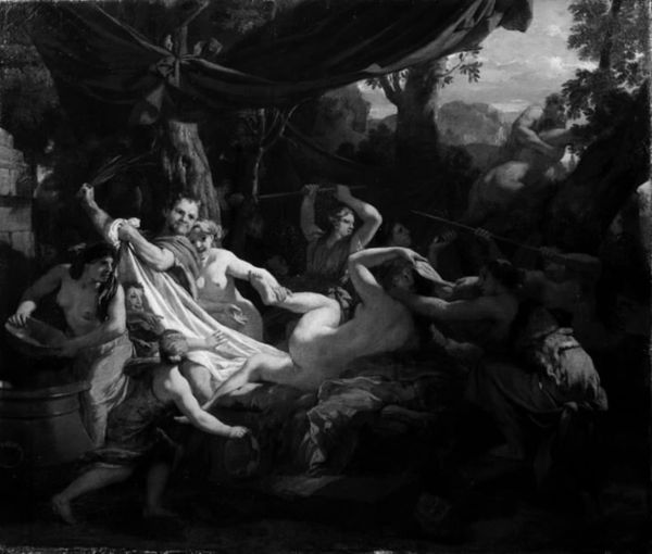 This large painting, “The Rape of the Sabine Women,” was created by an anonymous artist using traditional oil paint on canvas. The way the paint is layered creates a sense of depth and movement across the scene, typical of paintings made during the Renaissance. However, it is more than just an image; it is a carefully constructed object. The canvas would have been prepared by stretching it over a wooden frame, providing a surface that is receptive to layers of paint. The artist would have built up the image using glazes and scumbles of oil paint, working from dark to light. This meticulous layering process created the figures’ forms, textures of clothing, and emotional drama. Understanding the effort and skill involved in creating this painting reminds us that even seemingly straightforward artworks are the product of significant labor, time, and acquired technique. By appreciating these material and procedural aspects, we can better appreciate the artistic achievement.