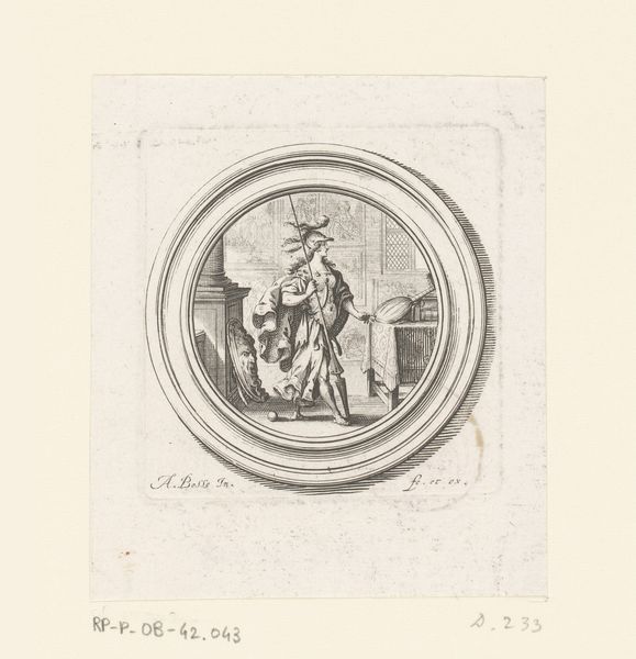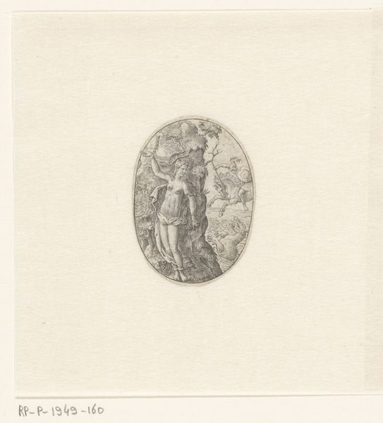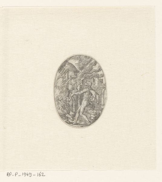 Editor: So, here we have "The Annunciation" by Monogrammist C. B., at the Harvard Art Museums. It's a tiny circular piece, and something about the delicate lines makes it feel incredibly intimate. What do you make of it? Curator: It's a whisper of a drawing, isn't it? Like a secret passed between the angel and Mary, caught in a web of lines. I wonder, what sort of light did the artist work in? Did they feel like they were revealing this moment, or simply tracing its shadow? Editor: That’s beautiful. I hadn’t thought of it as a shadow. Curator: Perhaps all art is just that, a shadow of an idea. Editor: I love that. Thanks for shedding light on it. Curator: The pleasure was all mine.