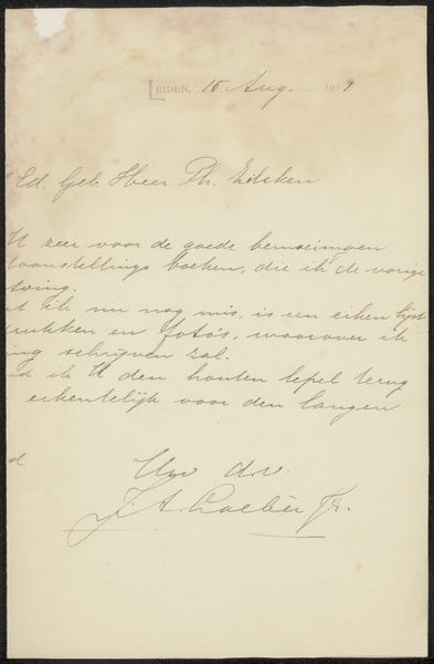 Here is a letter by Willem Maris, the Dutch landscape painter, to Frans Buffa and Sons. What strikes you first is the dynamic play of line and form. The script cascades across the pale paper, a flurry of loops, ascenders, and descenders creating a complex interplay of positive and negative space. The composition, though seemingly spontaneous, adheres to a structural rhythm. Observe how the various sections of text are not merely words but abstract shapes that relate to each other. The letter is a semiotic system. The elegant cursive represents not just written language but also cultural codes of communication and artistic expression. Maris uses handwriting to reveal not just the message, but also the structural and aesthetic possibilities within this medium. The letter, therefore, transcends its function as a mere document; it becomes a site where language and form intersect. The act of writing itself becomes an exploration of space, line, and texture, reflecting the artist's aesthetic sensibility and inviting us to reconsider how we perceive both language and art.
