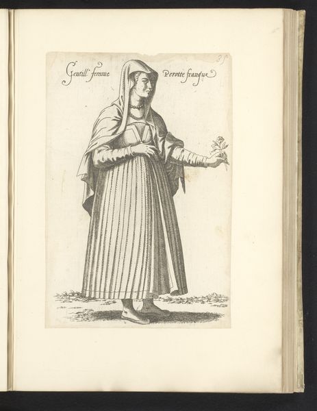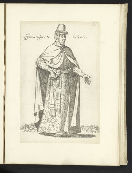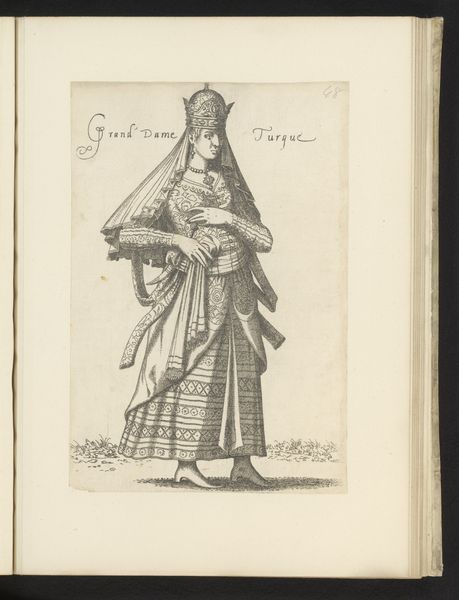 Léon Davent created this engraving, "Griekse vrouw, afkomstig uit Andrinopel of Edirne te Thracië," during a time when Europe’s fascination with the ‘exotic’ East was growing. This image depicts a Greek woman from Andrinopel, now known as Edirne in Turkey, a region of Thrace. The intricate patterns of her clothing and her modest demeanor reflect an effort to capture the perceived essence of women from the Ottoman Empire. But whose gaze does this image serve? Davent, a European artist, likely had limited direct exposure to the cultures he depicted. This distance raises questions about the accuracy and potential biases embedded within the work. How does the image perpetuate or challenge existing stereotypes about Eastern women? How might the woman herself have viewed this representation of her identity and culture? Consider the emotional weight carried by such images, both for those represented and for those who interpret them across time. This artwork is a lens through which we can examine the complexities of cultural exchange, representation, and the power dynamics inherent in the act of portrayal.