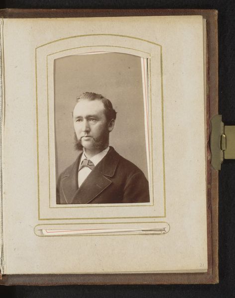This photograph, "Portret van een man met een hand in zijn jas gestoken", was created by Colombier. The portrait offers a glimpse into the visual culture of its time, where photography was becoming increasingly accessible. The man's dark coat, neatly trimmed beard, and poised stance are all markers of a particular social class and gender performance. His hand tucked into his coat is a gesture that speaks to both formality and perhaps a guarded sense of self. Consider the gaze of the sitter, which engages with the viewer directly. In traditional portraiture, such a gaze would denote status and self-assurance. However, in the context of early photography, where posing itself was a self-conscious act, how might this interaction signal something about the changing nature of identity and representation? How does this portrait fit into or challenge conventional representations of masculinity during its time?