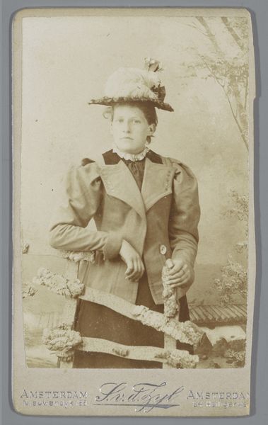Editor: So, here we have a photographic portrait from between 1872 and 1900, currently residing in the Rijksmuseum. It’s titled "Portret van een man in kostuum met degen, aangeduid als C.E. van Marle"—which translates to, a portrait of a man in costume with a sword, identified as C.E. van Marle. He certainly looks the part! What I find striking is the theatrical quality of the image, the very studied pose against what seems a simple outdoor setting. How do you read this photograph? Curator: This photograph, oh, it whispers stories, doesn't it? It’s like a stage still, a character plucked from a long-forgotten play. The ornate costume—that double-headed eagle emblazoned on the tunic—speaks to a desire for grandeur, a yearning for a romanticized past. But then, the somewhat drab backdrop, the flatness of the photographic technique... it creates a beautiful tension. I see someone attempting to embody power, perhaps even project a certain historical weight, yet the camera, with its unflinching eye, captures something more… vulnerable, perhaps? What do you think about the lack of vibrant color? Editor: That tension you describe makes complete sense. I hadn't thought about it that way. And yes, the sepia tones do contribute. It almost enhances that sense of history, but at the same time, there's something very immediate about it. Like you said, almost vulnerable. I suppose colour would really make this portrait something different, and less reflective, something like historical snapshot instead. Curator: Precisely! It would solidify the present, whereas now, we hover somewhere between then and now. And who hasn’t played dress-up, felt that tug to become someone else, someone grander, even for just a fleeting moment caught on film? I wonder about Van Marle, what play was he enacting in his own life? Or perhaps, the bigger question is what play we all play? Food for thought, isn’t it? Editor: Absolutely. I’m definitely looking at this photograph in a whole new light now, pun intended. Thank you.