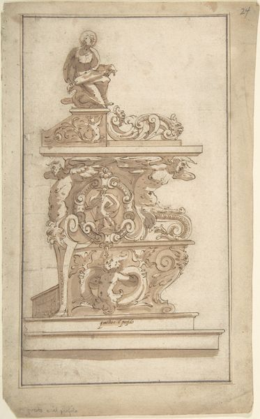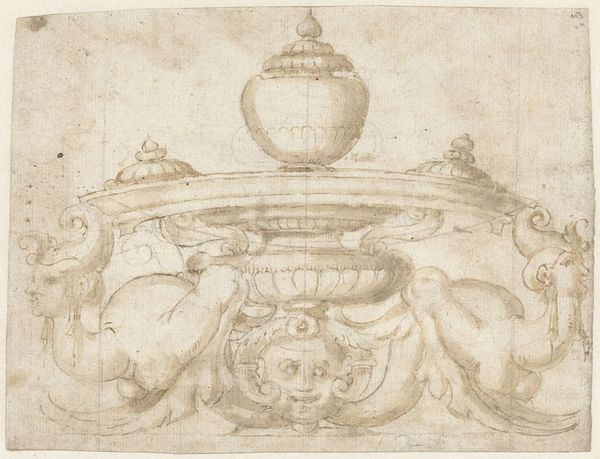 Giovanni Battista Naldini made this pen and brown ink design for a table in Italy during the late 16th century. This drawing presents the highly ornamented end of a table featuring hybrid figures and heraldic symbols. Drawings like this one offer a glimpse into the cultural world of Renaissance Europe, where the design of even everyday objects could communicate status and sophistication. The inclusion of sphinxes, winged figures, and elaborate foliate patterns reflects the period's fascination with classical antiquity, embodying the elite fashion of collecting antiquities. The prominent heraldic eagle suggests that this table was intended for an aristocratic or even royal patron, for display in domestic settings. To fully understand Naldini's work, scholars consult a range of documents, from inventories of aristocratic collections to treatises on design and heraldry. These resources help reveal the social context of the artwork, emphasizing how art is always embedded in its time.