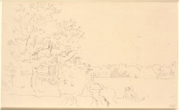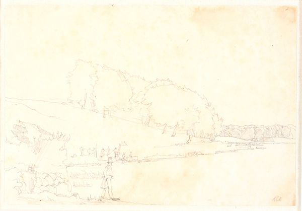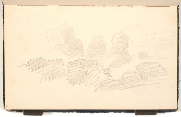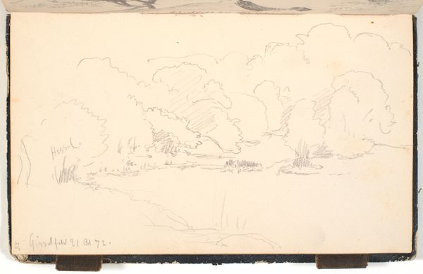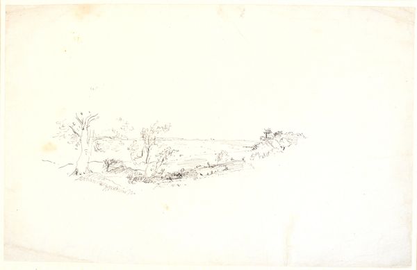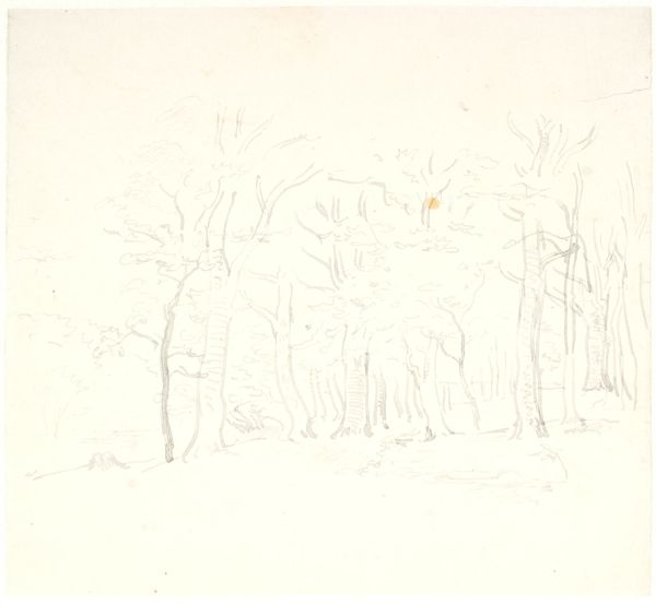 Curator: Here we have P.C. Skovgaard's 1872 pencil drawing, "Et skovbryn, i forgrunden en flad mark," which translates to "A forest edge, in the foreground a flat field," now residing at the SMK, the National Gallery of Denmark. Editor: It has a quiet melancholy about it, doesn't it? The almost ghostly quality of the pencil on paper, with a composition that feels deliberately subdued. Curator: Indeed. Skovgaard, as a central figure in the Danish Golden Age, was deeply invested in representing the Danish landscape as a carrier of national identity. But here, the starkness departs from that more celebratory tradition. Editor: The simplicity is striking. Almost a deliberate rejection of grandeur, focusing instead on the mundane, everyday. Do you see a parallel with the political mood then? Denmark had just suffered heavy losses in the war. Curator: Absolutely. There's a definite shift occurring within Danish art and society at this point. The heroic narratives were faltering, which encouraged realism. Skovgaard moves away from idealization and seems to grapple with the quiet aftermath of national trauma. Editor: This piece feels raw, unadorned. You could almost say that by capturing this simple vista, Skovgaard unintentionally confronts the very ideas of Danish romantic nationalism, stripping them down to a stark reality. What would the people see when the glamour faded? Curator: A good question, and one that many artists of the time grappled with. He was concerned with an accurate representation of nature, but through the lens of an individual confronting the quiet changes in the country’s social fabric. The understated technique allows for an exploration of feelings perhaps not so celebratory as he would present at other times in his career. Editor: Perhaps through its bareness, Skovgaard encourages us to contemplate not just the beauty of the landscape, but its complex relationship with identity and historical narratives. Curator: Precisely, by seeing beyond idealized portrayals of nationhood. Editor: An unusual encounter of place and purpose.