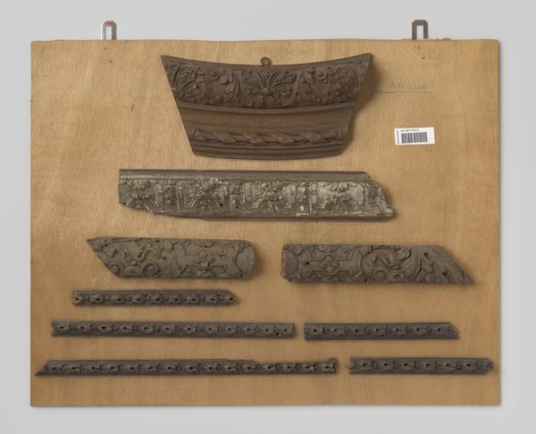 Editor: So, this is "Fragmenten van textiel horend bij een jas," or "Fragments of textile belonging to a jacket," dating back to between 1740 and 1760, created by an unknown artist. The materials listed are pretty diverse - mixed media, fibre art, assemblage, weaving, and textile, even sculpture! It all seems so delicate, like holding a forgotten memory. What do you make of this collection of fragments? Curator: Forgotten memories, indeed! They whisper, don't they? I'm immediately drawn to the texture - the roughhewn quality hinting at everyday life, and labor, contrasting with the implied opulence of a Baroque-era jacket. Consider how a garment becomes almost a relic – embodying not just fashion but personal history. Do you get a sense of narrative, perhaps a lost story, woven – literally – into these threads? Editor: I do, now that you mention it. There’s something about the deconstructed nature of it. It’s not a whole garment, just these snippets. It feels almost…sad? Like looking at remains. Curator: "Sadness" is such a compelling lens! It also reminds me that the survival of textiles is almost accidental. These scraps *persisted*. They were chosen, intentionally or otherwise, to outlive the original garment. Why? Sentimentality? Resourcefulness? Or simple chance? Does considering that shift your perception at all? Editor: Definitely! It's like the object takes on a completely different meaning when you realize it might have been someone's cherished memento. It elevates these simple materials. Curator: Precisely! And isn't it incredible how a humble assortment of textiles, through time and context, can evoke such profound reflection on history, memory, and human connection? It's like…poetry in the form of fragments. Editor: Absolutely. I came in just seeing some old bits of fabric, and I’m leaving thinking about survival and memory. That's the magic of art, I guess! Curator: And of shared curiosity, wouldn’t you agree?