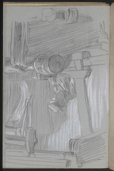 Curator: This pencil drawing is entitled "Gezicht op het water bij een pier in Amsterdam," or "View of the Water at a Pier in Amsterdam." It dates back to 1875 and is by George Clausen. Editor: Oh, immediately, I feel this quiet. Like a whispered secret, a late-night contemplation by the water’s edge. It's hazy and almost dreamlike in its softness. Curator: It is rendered with extraordinary subtlety. Notice the artist's almost tonal approach to pencil work, very much like what you might expect from an oil painting in terms of establishing a broad value range to generate depth. The pier itself acts as a very direct symbol of access and passage, linking earth and water but also inviting viewers into the scene, quite deliberately. Editor: And that almost hesitant, moon hanging in the sky – not bold or assertive, but a gentle, muted presence. It pulls the whole image together, reflecting off the dark water, providing just enough light. It feels… romantic, maybe even melancholic, as befitting its style and date. I get lost imagining who would have strolled along this pier so long ago. Curator: Absolutely. And that feeling is something that Clausen deliberately tapped into as part of a broader trend toward Romanticism in the visual arts, the artistic portrayal of cityscapes especially during that era of profound urbanization and urban angst. This can often be a method of dealing with urban alienation; such a tranquil scene set in a modern, industrializing city would have stood out to viewers, even ironically. Editor: I find myself thinking, was Clausen trying to offer a balm in an otherwise turbulent world? Maybe remind folks of beauty, peace, the allure of quietude right smack in the middle of this burgeoning metropolis, Amsterdam. There's definitely that element of wistfulness. The symbolism makes you realize these docks are more than just for work, travel and trade... they're gateways of dreams, thresholds, boundaries and connections. Curator: That resonates strongly with the symbolic importance we attach to the pier as a visual motif over time. Editor: So true, well, I think it is that dreamy and accessible atmosphere of the Amsterdam docks on a Saturday evening which still resonates. Curator: A thoughtful interpretation that sheds light on Clausen's piece, indeed.