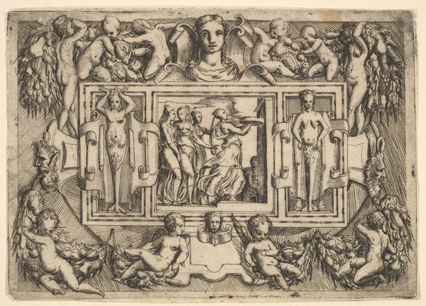 Editor: Here we have Giulio Clovio's "Nativity and Adam and Eve" from 1546, painted in tempera. The symmetry is so striking! How do you approach this piece, particularly considering Clovio’s choices in material? Curator: The use of tempera is key here. Unlike oil, tempera dries incredibly quickly, demanding a meticulous and planned process. This speaks to the intense labor and skill invested. Also consider its small scale. For whom was such an object created and what does this indicate? Editor: That’s fascinating! Knowing it’s tempera shifts my perception completely; it seems like it required enormous patience. Given the biblical themes and obvious expense of this manuscript painting, who could even afford to produce such an elaborate item? Curator: Precisely. It speaks to the patronage system, where powerful individuals controlled artistic production and what type of visual expressions became available. What relationship might exist between the patron and the artist in terms of shared class? Or, indeed, tension, resulting from asymmetrical status? Editor: It really highlights the economic and social factors involved. It's easy to forget the material cost of even making art in the first place, something often overlooked when just looking at paintings as purely aesthetic objects.. Curator: Exactly! Considering Clovio's miniature, tempera, and subject, this was certainly meant to display more than the artists' vision; the patrons' world of power, skill and resources becomes visible. Editor: I will look at art in books differently going forward. I had never considered the economic relationship so intricately intertwined within these paintings. Curator: Exactly. These are material goods shaped by material conditions as well as visions.
