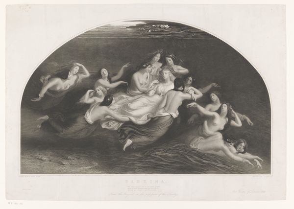Editor: This is Peter Lightfoot's "Sabrina," date unknown, housed here at Harvard. The swirling figures and monochromatic palette create a very dreamlike, ethereal feeling. How do you interpret this work? Curator: It feels like stepping into a literary vision, doesn't it? The grouping of figures, perhaps nymphs, evokes classical mythology. The title, "Sabrina," probably references the nymph of the River Severn in British folklore. Do you sense the pre-Raphaelite influence? Editor: I can see that. The flowing hair and idealized forms remind me of Waterhouse. What does it say about the artist’s perception of women, or nature? Curator: Perhaps Lightfoot is romanticizing both. It's a dance between the real and the imagined. I wonder what drew him to this particular subject. Editor: I hadn't considered the literary aspect before, but I think it adds a lot to how I see the piece. Thanks! Curator: My pleasure. Art is always richer when we connect it to the broader cultural landscape.