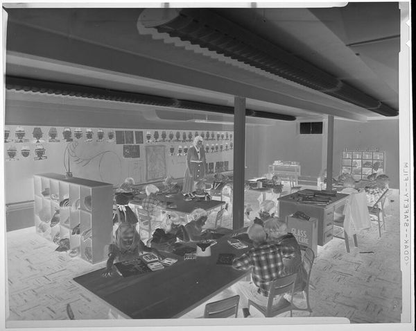 Editor: This intriguing silver gelatin print, "Untitled (dress store interior)" by Ken Whitmire Associates, really captures the hustle and bustle of shopping. What stands out to you about it? Curator: I see a social study of material culture. The photograph documents the physical space of commerce, highlighting the racks of clothing and the consuming crowd. What can we learn about societal values from what's being bought and sold here? Editor: That's fascinating! So, you're saying the arrangement of clothes and shoppers tells us something about production and consumption? Curator: Precisely. The image invites us to think about the labor, materials, and ultimately, the economic forces driving this scene. Editor: I never thought of it that way before. Thanks for opening my eyes to the material story behind the image!