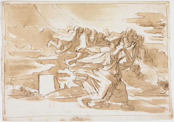 This is John Singleton Copley’s sketch of a wrecked longboat, capturing a moment of desperate struggle during the Siege of Gibraltar. Here, we see figures clinging to debris amidst turbulent waters. The longboat, once a symbol of safe passage, is now splintered, mirroring the fractured hopes of those it carried. Notice the motif of human figures in disarray, striving against an overwhelming force. This struggle is a theme resonant throughout art history. Consider, for example, the figures in Gericault's "The Raft of the Medusa," another depiction of maritime disaster. These images tap into a primal fear of the sea, but also our enduring fascination with survival against the odds. The sea, an eternal symbol of chaos, embodies not only physical danger but also the unpredictable nature of fate itself. This image of collective trauma engages viewers on a subconscious level, reminding us of our shared vulnerability in the face of nature’s power. It’s a timeless tableau of human resilience, continually re-emerging across artistic expressions.