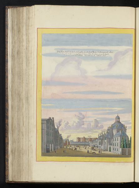 Curator: Here we have Matthäus Merian the Younger’s “View of the Church of Saint-Paul-Saint-Louis in Paris," dating back to 1655. It’s a captivating drawing, created using pen, watercolor, and coloured pencil, now residing here at the Rijksmuseum. Editor: Well, right off the bat, it feels almost like looking into a meticulously rendered dream. There’s something quite serene and balanced about the composition, though perhaps a touch formal. What's most striking is the softness of the colours, almost ethereal against the clear structure. Curator: Indeed. Merian’s baroque style lends that structural clarity you noted. But remember the context; cityscape depictions were increasingly vital. Prints and drawings helped disseminate information about cities and architectural marvels—serving both practical and political purposes. This was the age of absolutism, where powerful displays of architecture reinforced authority. Editor: Right, the urban image as propaganda. Still, what resonates with me isn't the grand political narrative, but how Merian captures the specific light – the hazy, late afternoon glow illuminating the baroque facade. It makes me wonder what he felt about Paris itself while rendering each stone and cloud. Curator: Good point. Beyond documentation, this view presents Paris as a burgeoning European power, literally building a grand future. Saint-Paul-Saint-Louis was a Jesuit church. Commissioned under Louis XIII and completed in 1641, it stood as a symbol of renewed Catholic vigour. Editor: The ruined walls on the right, though… They hint at another story, like a fading echo of an older city being absorbed or erased by the new ambitions. Are those the remnants of a previous structure on that site, perhaps? Or is that purely artistic license? Curator: It adds complexity, doesn’t it? Paris was, in reality, a chaotic, layered palimpsest of old and new. The drawing acknowledges that while still emphasizing the forward momentum embodied by the church’s imposing presence. Merian’s from Basel; his view, literally and figuratively, is perhaps that of an outsider looking in. Editor: Perhaps. It's like he is suggesting history is always being built over. Layers of intentions, brick by brick... Well, now when I see it I feel both calmed by the mastery, and also subtly challenged by what I don't see, those silences that history leaves between what is remembered and forgotten. Curator: A wonderful insight to leave us with. It shows us the role of cityscapes were as much about selective remembering as about accurate record keeping.