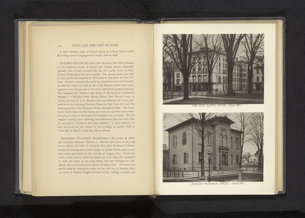 These albumen prints, by James Notman, are mounted in a book dating from the late 19th century, and depict buildings at Yale College. The albumen process, popular at the time, involved coating paper with egg white before applying a silver nitrate solution. This created a light-sensitive surface, which, when exposed to light through a negative, produced a detailed photographic print. The tones we see here -- warm browns and sepia -- are characteristic of the albumen print. But there's more to it than just the chemistry. Consider the labor involved: preparing the paper, exposing the print, and then carefully mounting it into a book. Each step required skilled hands, reflecting the value placed on craftsmanship and precision in the Victorian era. These images were not just documentation, but carefully crafted objects, and it is important to remember this when understanding the full meaning of this artwork.
