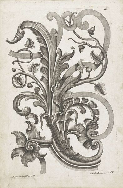 Editor: Here we have *Fries met bladranken*, a decorative frieze of foliage made with ink around 1470-1500, credited to Meester PW van Keulen. It looks like an engraving, and what strikes me first is the incredible detail achieved with line and cross-hatching. What do you see when you look at this piece? Curator: I see a testament to the evolving role of craft and the burgeoning print market in the late 15th century. Look at the technical skill involved in producing such fine lines and intricate patterns. This wasn't necessarily 'high art' in the traditional sense, but a commodity produced for a specific purpose. What might that purpose be, do you think? Editor: Maybe for decoration, like wallpaper or architectural details? I’m guessing they were printed and then applied to surfaces. Curator: Exactly. The affordability and replicability of prints revolutionized access to visual culture. The design itself also tells a story. The use of foliage reflects a renewed interest in the natural world during the Renaissance. How might the rise of mercantile capitalism affect this artwork and others from this time? Editor: So, maybe increased trade introduced new plant species or new markets for decorative arts, influencing both the subject matter and production of prints like this one? The printmaking itself also created its own networks, where artisans learned from each other, experimented with different tools, and spread methods around. Curator: Precisely! It's not just about aesthetic appreciation; it’s about understanding the material conditions and social forces that shaped its creation and dissemination. Understanding all the networks involved truly contextualizes it. Editor: I'm starting to see how analyzing the production reveals a completely different aspect of the artwork. Curator: Yes, the "how" and "why" of its creation often reveal more than the "what." Considering all those influences really puts the image and its making in perspective.