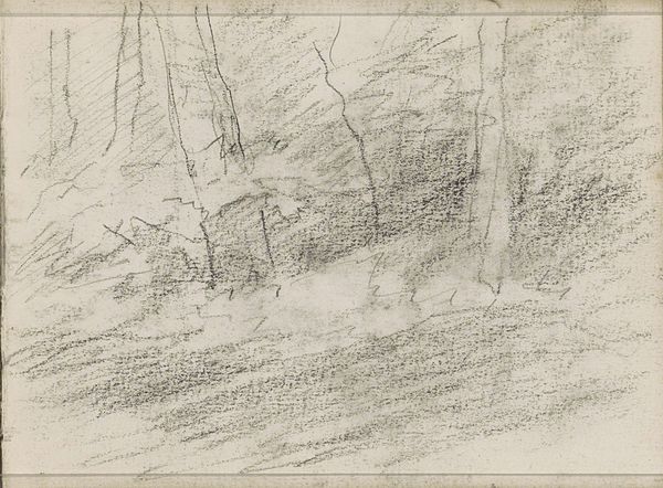 Anton Mauve created this drawing of tree trunks using black chalk and touches of color on paper. Chalk, a humble material, allows for rapid sketching and capturing of fleeting moments, quite different from the laborious, more staged approach of oil painting. Mauve's choice of chalk suggests a focus on immediacy and a direct connection with the subject. The marks are direct, raw, capturing the density of a forest. The use of such a readily available, inexpensive material also reflects a shift towards portraying everyday life and the working landscape. Unlike the polished surfaces of academic painting, chalk lends itself to a more informal, intimate portrayal of the natural world. It echoes the raw materials of labor and industry. The drawing reminds us that every artwork is rooted in material and process. It challenges us to look beyond the image and consider the artist's hand and the world they lived in.