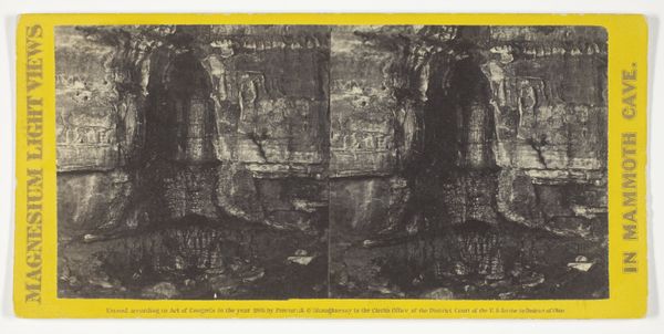 This stereograph, "Entrance to 'Long Route'", presents a pair of images of Mammoth Cave, made by Chas. Waldack, presumably in the late 19th century. What is striking about this image is the method used to create it: magnesium light. This was achieved by igniting magnesium wire or powder, which produced a brilliant, albeit brief, flash of light. Consider the labor involved. Someone had to haul the equipment into the cave, arrange the shot, ignite the magnesium, and then process the photographic plates. It was a physical, chemical, and collaborative process. The resulting image is not just a visual record, but an index of this labor. The graininess of the photograph, the stark contrast between light and shadow, the very fact that we can see into this subterranean world – all are results of these intensive efforts. This photograph, therefore, is a powerful reminder that all images are made, not just taken, and that the conditions of their making profoundly affect their meaning.