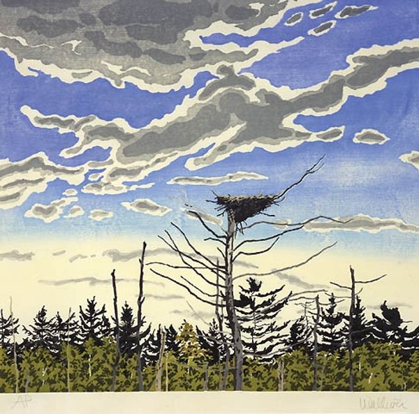 Curator: This is “Zakat” by Ivan Bilibin, a watercolor illustration from 1926. Look at the contrast between light and shadow! What do you make of it? Editor: A somber beauty. The strong silhouettes of the dark trees against the golden sunset… it feels like the end of a fairy tale. Or perhaps the beginning of a dark one. Curator: That’s interesting, because Bilibin was known for illustrating fairy tales. What strikes me is how the stylization borrows from traditional Russian art and even Japanese prints, creating depth through layering rather than perspective. His work really fed into the rising interest in national identity. Editor: Precisely! The stylized forest becomes more than just a setting. It speaks to a primal connection with the land, something deep in the Russian psyche. And that setting sun! Is it simply a sunset or something being sacrificed? What is the symbolic value of sunset in Russian cultural imaginary at the turn of the century? Curator: Good questions. Bilibin painted this after emigrating from Russia. He was, as you alluded to, steeped in national mythologies. Do you see him attempting to recreate or reclaim a homeland he left behind? Was he even consciously thinking about Russian artistic nationalism while producing it in Cairo? Editor: I think it’s subconscious but utterly intrinsic. This wasn’t just illustrating tales; this was crafting an identity through iconic visual codes. That orange sun, partially hidden—like a fading ember, almost mythological in its appearance! Even the muted colors evoke the melancholy and nostalgia common in emigration narratives. Curator: Fascinating point, about its role in articulating and solidifying identity through visual culture. Especially poignant considering the work emerged in exile! Editor: Looking closer, that birch log in the foreground—is it also a reference to the classic Russian landscape? To some deep yearning or desire? I wonder. Curator: These stylized symbols really demonstrate the power of visual language in reflecting identity. It makes me consider what this painting's role might have been in shaping the West's idea of Russia through illustration and printed matter. Editor: Indeed! It makes you ponder the ongoing resonance of certain images and how artists use imagery to preserve and adapt culture over generations. Curator: An echo through time, captured in watercolor. Editor: Beautiful, evocative, and ultimately very sad. A fascinating snapshot, both artistically and historically.