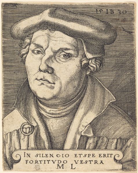 This engraving of Martin Luther, was created by Heinrich Aldegrever. Luther’s gaze is directed off to the side, a common pose in portraits of leaders. But it is the Latin inscription above his head, "Jacta curam tuam in Domino et ipse te enutriet" – "Cast your cares on the Lord and he will sustain you"—that truly resonates. This phrase, echoing Psalm 55:22, is also found in depictions of anxieties and burdens. Consider the ancient Greek motif of Atlas bearing the world, or even images of Christ carrying the cross. Here, it's adapted for Luther, suggesting that he channels God's strength and grace, as he confronted the immense weight of reforming the church. This echoes in later movements, where leaders are seen shouldering societal burdens. The portrayal of Luther as a man both burdened and divinely supported speaks to the recurring human desire to find solace and strength in faith. The emotional resonance of this image stems from its connection to the shared human experience of seeking divine support in times of strife. And so, this symbol evolves, resurfaces, and transforms, gaining new significance.