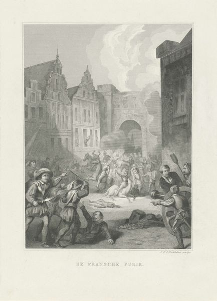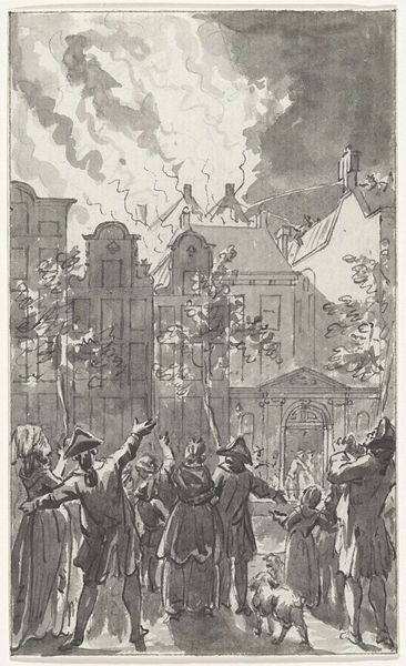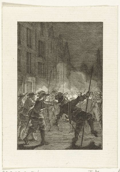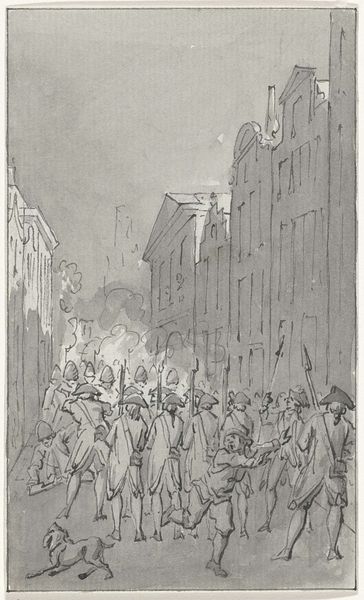 Jacobus Buys made this print depicting Prussian troops leaving Utrecht on September 16, 1787. The print captures a key moment in Dutch history, reflecting the political tensions and foreign interventions of the late 18th century. The image shows Prussian soldiers marching out of the city while animated figures look on. This event was part of the Prussian intervention to restore the power of the Stadtholder, Prince William V, against the Patriot movement which sought democratic reforms. The level of detail, particularly in the soldiers' uniforms and the architectural background, offers insights into the military and urban environment of the time. Buys likely aimed to document and comment on the political and social dynamics of the Dutch Republic. By studying period documents, political pamphlets, and military records, we can better understand the context of this image. It serves as a reminder that art is often intertwined with political events.