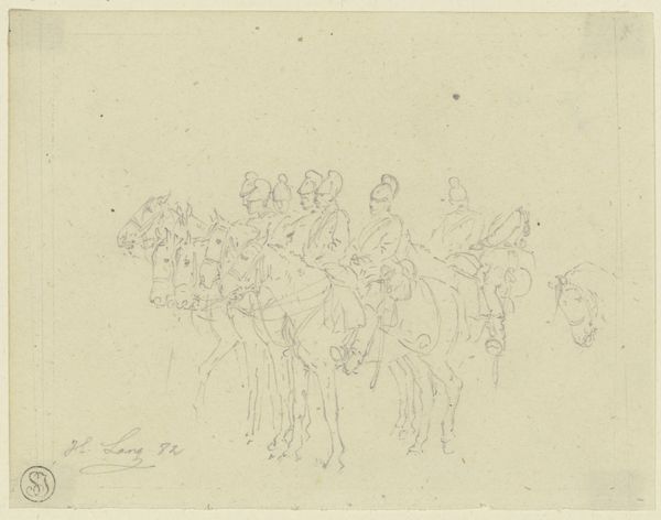 Editor: This is Moritz von Schwind’s "Study sheet_ Elfin dance," a 19th-century ink and pencil drawing on paper, housed at the Städel Museum. The ethereal figures give it a light, almost whimsical feel. How do you interpret this work? Curator: Well, it’s crucial to understand this piece within the context of 19th-century Romanticism, a period deeply invested in folklore and the supernatural. These aren't just whimsical figures; they represent a longing for a pre-industrial, perhaps even pre-Christian, past, don’t you think? A world where humans existed in harmony with nature and its hidden, magical elements. Think about the rising industrialization and displacement of rural communities happening at the time. Editor: I see what you mean. So, the drawing could be viewed as a form of resistance, or at least, a yearning for an alternative way of life? Curator: Precisely! And let's consider who these figures are: elves. In many European traditions, elves are powerful, often ambivalent figures associated with marginalized communities. Could Schwind be hinting at anxieties surrounding shifting social hierarchies or repressed folk traditions? It encourages us to contemplate how folklore, especially within the framework of Romanticism, often became a space for expressing societal tensions indirectly. What purpose does it serve to focus on elfin dances, versus contemporary, more political subjects? Editor: It’s fascinating to consider the social implications embedded within this seemingly lighthearted drawing. I guess I hadn’t fully appreciated the layers of meaning woven into the romanticized depiction. Curator: Right. Art often speaks volumes through its subtext. This work prompts us to consider how artistic choices are inextricably linked to the cultural narratives and societal power dynamics of their time. Editor: This was insightful; thank you for unpacking its cultural and historical nuances. Curator: My pleasure. Art offers continuous critical reflection on how societies, past and present, understand themselves.