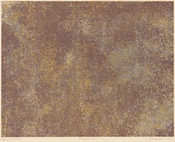 Jean Dubuffet made ‘Texte de terre’ using lithography sometime around 1959. It’s like he took a piece of the earth and pressed it onto paper! I’m always fascinated by surfaces, and this one is all about texture. It's not just brown; it's a whole world of browns and blacks, layered like sediment. Look closely, and you’ll see it’s made of tiny specks, built up, each one a little decision, a little gesture. It reminds me of my own process, how a painting evolves from one mark to the next. There’s a patch on the left side where the brown seems to deepen into black. I wonder if that was one of the first marks he made? It feels so primal, like staring at the ground and seeing the whole universe in a handful of dirt. Dubuffet reminds me a bit of Guston in that he was reaching for something raw, something almost anti-art.