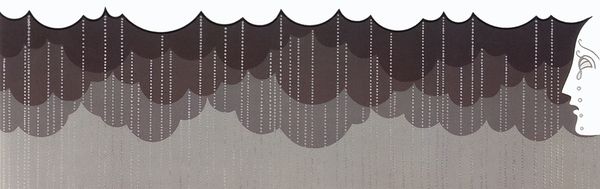 Curator: The artwork before us is entitled "Flying Saucer and Cloud (Blue)" by John Baldessari. It employs acrylic paint to depict a rather stark, enigmatic scene. What strikes you immediately about this piece? Editor: There's something deeply unsettling in its simplicity. The high contrast of the flat blue cloud against the photographic saucer and the vast white space creates a kind of quiet tension, a sense of something impending. Curator: That tension resonates with Baldessari's broader artistic practice, which often critiques and subverts established norms. I read the work in the context of postmodern alienation, this separation can comment on technology’s place in contemporary social awareness as this separation, too, often mirrors racial and political separation. How might symbols contribute to these cultural readings of alienation? Editor: Clouds, classically symbols of divinity, freedom, or even ominous prophecy depending on their darkness; here, it's a childishly simple blue shape, devoid of depth, divorced from those meanings, emptied of any specific connection. Similarly, the flying saucer, once an icon of futurism and hope, feels cold and clinical. The symbols themselves have lost something. The iconography creates an experience of stark symbolic disruption. Curator: Indeed. This fragmentation speaks to Baldessari's challenge to visual language. Consider the power structures embedded in the media and technological advancement: this scene hints at covert government narratives during times of widespread surveillance anxiety and paranoia, anxieties around social and physical isolation—particularly among BIPOC communities whose stories and images often get rewritten or entirely suppressed by external narrators. Editor: Absolutely, I think that alienation can be also interpreted more existentially as one between man and machines which speaks to today's issues on AI. The high contrast of black and white with such bright colors certainly calls for some sort of disruptive experience that is not often expected of us as humans in a naturalized world. Curator: Yes! It prompts us to critically examine the stories we consume and to consider whose perspectives are foregrounded. Editor: A compelling observation. Seeing how established visual icons are stripped of their common associations, is interesting. I like how the piece invites this reconsideration and conversation around contemporary symbolic language. Curator: It challenges us to actively re-interpret and rebuild their significations as cultural paradigms shift over time.