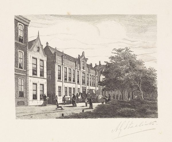 This sepia drawing of the Huis ten Bosch Palace in The Hague was made by Frederik Christiaan Bierweiler in the early 19th century. It's rendered in pen and brown ink, giving the scene a warm, nostalgic feel. Look closely, and you'll notice the meticulous detail in the architectural elements, the texture of the trees, and the figures strolling in the garden. The artist carefully built up layers of fine lines to create depth and shadow, capturing the essence of the palace and its surroundings. The drawing exemplifies the detailed precision valued in topographical art. But consider, too, how much work went into the maintenance of this estate. This image gives us a glimpse into the lives of the privileged, it is important to remember the labor upon which such luxury was built. This drawing isn’t just a picture; it's a historical record of power and social structure.