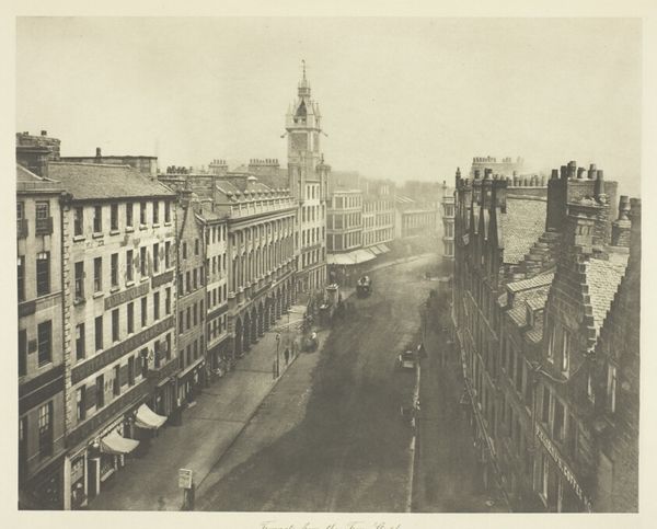 Editor: This is "View of the Boulevards at Paris" by William Henry Fox Talbot, taken between 1843 and 1844, a daguerreotype photograph. It has a dreamy, almost ethereal quality, but also feels very precise. What story do you think it tells about Paris? Curator: It's tempting to romanticize this early photograph as purely nostalgic, but I think it reveals more about the intersection of class and visibility in a rapidly modernizing city. Consider that daguerreotypes, while groundbreaking, required long exposure times. This effectively erased the working class from the image – the street sweepers, vendors, and everyday laborers who populated the boulevards would be blurs, ghosts in the machine. What we are left with is architecture, bourgeois life, the stillness of a specific societal tier. Editor: So, the photograph inadvertently, or perhaps advertently, creates a specific narrative through its technical limitations? It chooses who gets to be seen? Curator: Precisely. And this aligns with the broader historical context. The Parisian boulevards were, in a way, intentionally designed to control the populace, allowing for easier troop movement and suppressing potential uprisings. Photography, like urban planning, became another tool that dictated who and what would be represented. How does knowing that affect your initial impression? Editor: It definitely complicates it. It's no longer just a pretty cityscape; it’s a document of social engineering, intentionally or not. Curator: Indeed. And in considering the evolution of photography, we see how accessibility shifted, challenging those power dynamics, offering space and agency to the marginalized, and transforming what a 'view' really means. Editor: I never would have looked at it that way without your insight! It’s so much richer when you consider the social implications of image-making itself. Curator: It's a reminder that even the most seemingly objective images are shaped by cultural, political, and technological forces, isn't it?