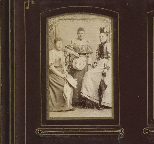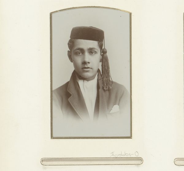 Editor: This is a print titled "Administrateurs van Grobogan," dating from sometime between 1910 and 1928. It appears to be a collection of portrait photographs. It gives me a very formal, almost stately impression. What stands out to you? Curator: What I see immediately is the way cultural identity is deliberately constructed here. The men wear distinct headwear and ornamented jackets that point to rank. But beyond this, the very arrangement—the hierarchy of placement on the page—speaks volumes about social order. Editor: Hierarchy, definitely. The central portrait is larger and framed more elaborately. The headwear seems pretty similar, though. How do you differentiate status from that? Curator: It's subtle, isn't it? Look closely. The textures and adornments might vary slightly. Consider also the gaze. Does it convey authority? Are they looking directly at the viewer or slightly away, signifying different relationships to power and the act of being observed? Do you get the sense of a visual language carefully chosen and ingrained? Editor: Yes, now that you point it out. There's an undeniable feeling of intentionality. I wonder about the written names, and the location, and what it all represents. What statement it makes collectively? Curator: Exactly! Consider how visual statements often embed deep cultural memories, shaping identity over generations. We are really invited to contemplate what traditions these administrators embody and uphold through these considered photographic compositions. Editor: I never would have considered all of those things just looking at it. Now I can appreciate that so much is said through symbols.