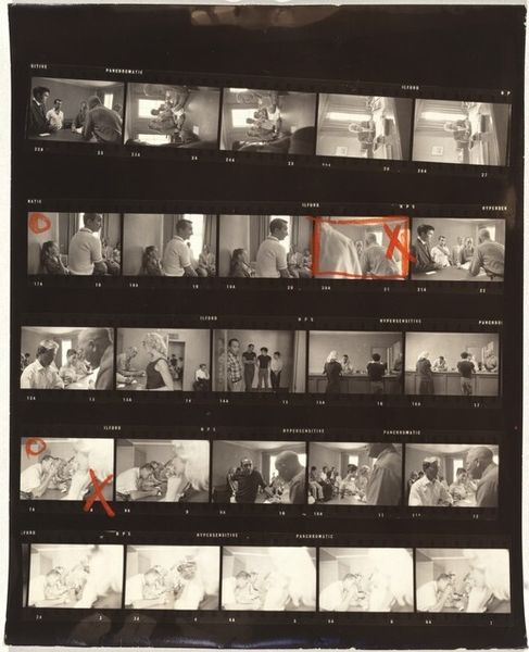 Robert Frank gave us "Central Casting--Hollywood 69", a gelatin silver print, sometime in the late 60’s. Isn't it fascinating how a photographer makes marks too, scratching out images here and there, or circling another? The contact sheet becomes a document of a decision making process. It’s almost like looking at a painter's underpainting, the stage when the whole image is roughed in and then slowly brought into focus, with the original marks still visible underneath. The marks that Frank leaves, these bold red 'X's, and circles, they strike me as almost violent acts. They emphasize not only the artifice of image-making but the violence of choosing some images over others, lifting certain bodies into the light while leaving others in the dark. It reminds me a little of Gerhard Richter’s photo paintings, this interest in the way the hand can disrupt or ‘incorrect’ the photographic image. It’s this embrace of ambiguity, the space between clarity and chaos, that makes Frank’s work so compelling.