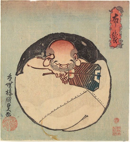 This is Utagawa Hiroshige's woodblock print of Ōtomo no Kuronushi. Hiroshige created it in a Japan marked by social hierarchy, where class and historical narratives intertwined deeply with artistic expression. Here, we see Kuronushi, a figure from the classical poetry anthology, the Ogura Hyakunin Isshu. He's often depicted as lower-class and of dubious character. Hiroshige challenges the traditional representations, portraying Kuronushi with a sense of dignity. Look at his confident posture, in contrast to the snide poetry written about him. This print operates within a complex cultural context, reflecting both reverence for classical literature and a subtle commentary on social biases. How does Hiroshige use his art to question established perceptions? The emotional depth of this piece lies in its ability to humanize a figure often relegated to the margins of history.