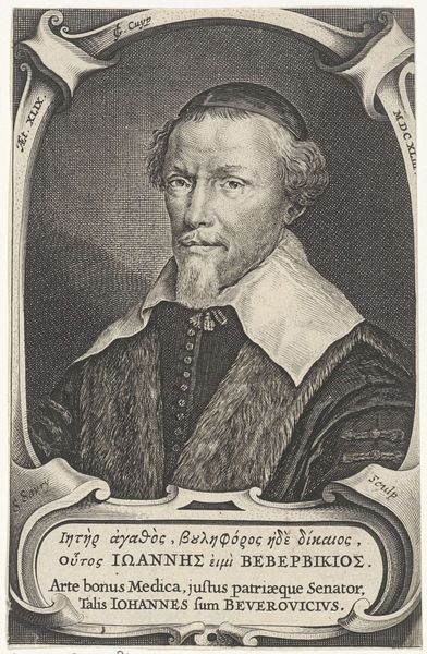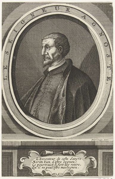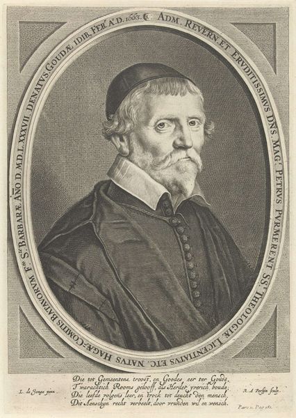 This is Reinier van Persijn’s engraving of Suitbertus Purmerent, made around 1650. Purmerent is depicted wearing a zucchetto, a clerical skullcap, indicating his religious status. The oval frame surrounding Purmerent contains inscriptions laden with meaning, referencing his birth and death anniversaries. Ovals have been used in art throughout the ages to signify eternity and cyclical time, encapsulating the continuous return and evolution of symbols. Consider the recurrence of the oval shape throughout history – from ancient Roman portraiture to Renaissance emblems. This form carries within it a history of diverse cultural meanings and psychological weights, reflecting humanity's continuous quest to capture and understand time. The inscriptions within, though specific to Purmerent, tap into broader themes of mortality and legacy, deeply engaging our subconscious recognition of life's cyclical nature. These motifs are not merely historical artifacts but powerful forces engaging viewers on a deep, subconscious level.