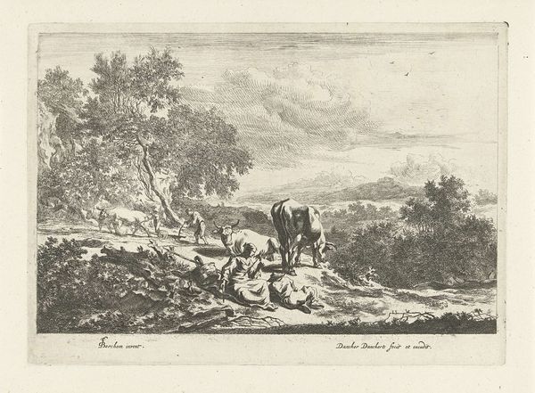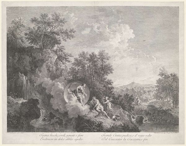 Editor: This is "A Youth Asleep, Surrounded by Animals," an engraving by Susanna Duncombe. It feels almost dreamlike. What strikes you about it? Curator: I see the labor of the engraver, A. Walker, translating Duncombe's vision into reproducible form. How does the material—the copper plate, the acid, the press—shape our understanding of the pastoral ideal being presented? Editor: So, the physical process is key? Curator: Precisely! It brings a social dimension, making art accessible, a commodity. Does that change how we value the image of idyllic nature? Editor: It's fascinating to consider the labor involved, and how that democratizes art. Curator: Exactly, and it affects its perception.